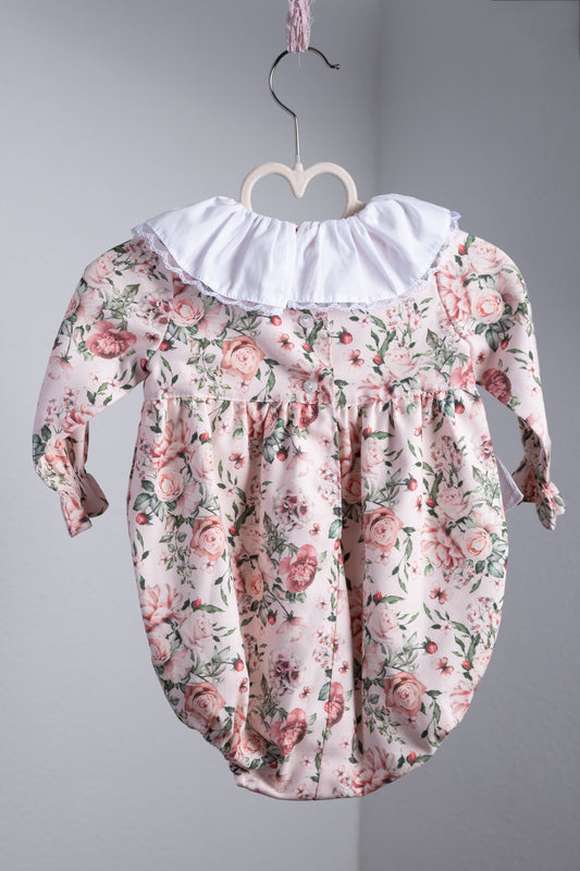 Leuke fleurige roze jumpsuit met schouderbandjes